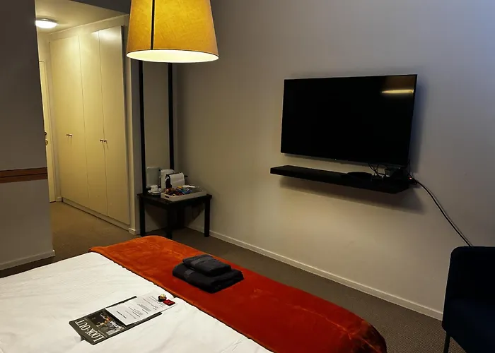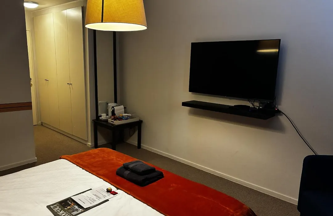 アントウェルペンにあるホテルの一部の客室には食器棚 と薄型テレビが備わっています。